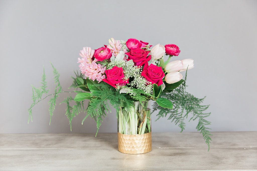 Are you ready for Valentine’s Day? We are. Love is definitely in the air at J. Morris Flowers. Not just romantic love, but also love for friends and family. Myriam and Katie and I had so much fun working on our collection for this year. We have chosen some beautiful vases to go each of our designs. We know you’re going to love them.